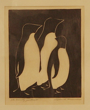 STEPHEN DE HOSPODAR "The Family Portrait" Woodblock on Rice Paper American, signed, Circa 1930 6.5 x 5 inches; with frame, 17 x 13 inches SOLD!!