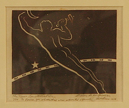 STEPHEN DE HOSPODAR "The New Constellation" Woodblock on Heavy Paper American, signed, dated 1934, numbered 1/50 5.5 x 4.5 inches; with frame, 17.75 x 14.75 inches e-mail Jack for a price for #41